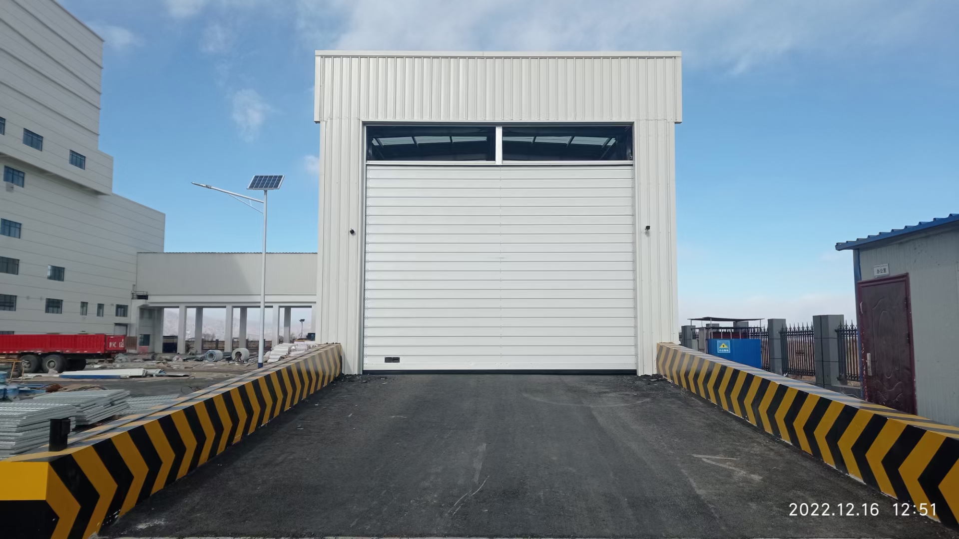 解决方案:拉斐特硬质快速门+道闸(道闸与快速门联动,防止车撞门)